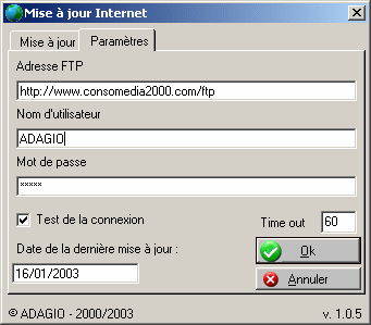 Note 2: l'adresse peut être une adresse locale de type FILE://... afin de permettre une mise à jour distribuée au sein d'un réseau local ou Intranet (pour rappel: le répertoire doit être indiqué sous sa forme internet, avec des / en remplacement de \. Ainsi, le répertoire C:\MESDOCS\FTP sera indiqué sous la forme FILE://C:/MESDOCS/FTP)