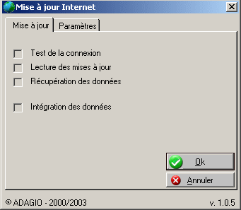 L'utilitaire de mise à jour Internet UpdNet.EXE assure automatiquement la mise à jour de la base de données en :
